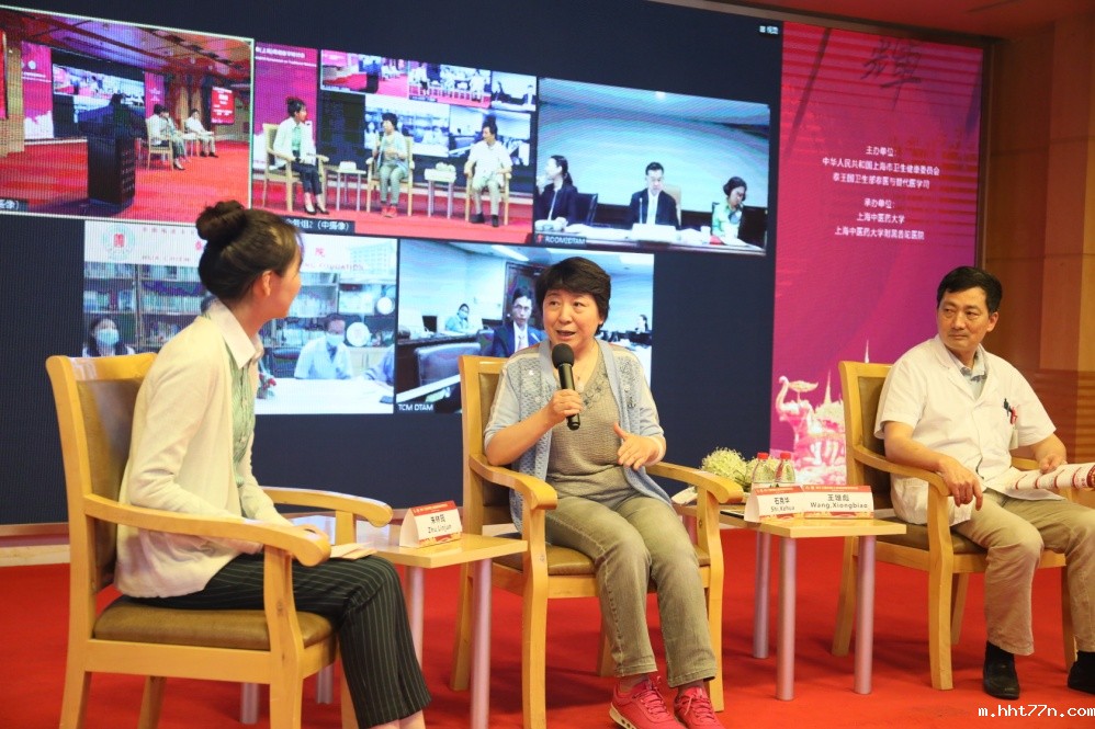 在专家授课环节,普陀医院院长黄德魁主持会议。附属龙华医院方邦江教授、曙光医院张炜教授和泰国泰医研究院Dr. Kulthanit Wanaratna(林鲲宝)主任先后作学术报告,主要介绍传统医学在新冠肺炎疫情防控中发挥的作用。