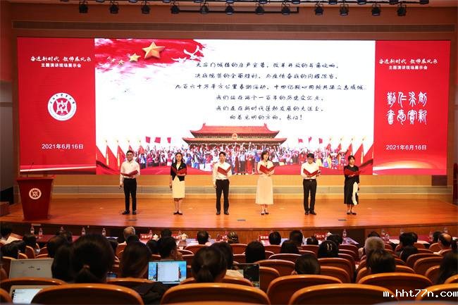 “一个时代有一个时代的主题,一代人有一代人的使命”,由机关党委青年党员教师赵如月原创的作品《走在新时代长征路上的上中医人》歌颂了上中医老一辈名医大家用信仰撑起“教师”二字的责任和使命,将毕生心血奉献给杏林沃土的长征精神,并号召教师们在新时代长征路上永葆初心,为党育人、为国育才,为中医药事业的弘扬发展奋进。《守教育报国初心,担筑梦育人使命》演讲则通过三位分别从事教学、科研和行政工作的青年教师视野,讲述他们在异国他乡开展主题党团日活动、发展中药产业助力脱贫攻坚及两代教师师道传承的故事。一段段承载着爱国情、强国志、报国行的追梦征程,激励着现场师生坚定理想信念,立鸿鹄志、做奋斗者。
