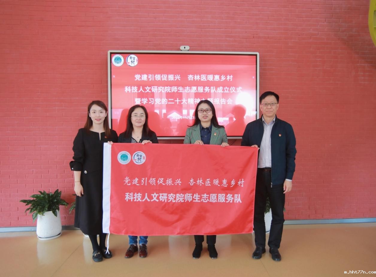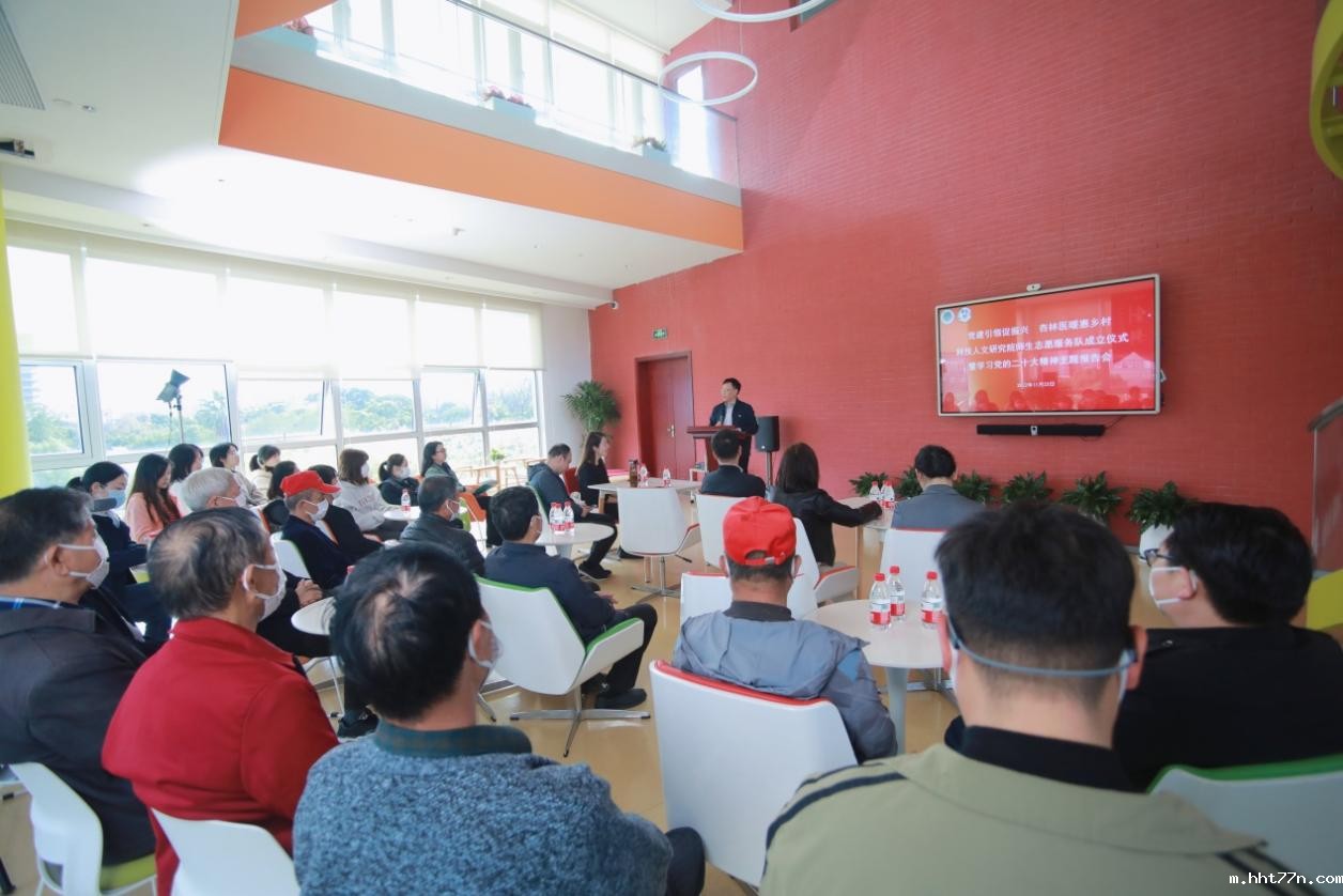 为学习贯彻党的二十大精神,进一步打造党建特色,发挥中医药优势,服务乡村振兴,11月23日下午,“党建引领促振兴 杏林医暖惠乡村”科技人文研究院师生志愿服务队成立仪式暨学习党的二十大精神主题报告会在国际交流合作中心多功能厅举行。科技人文研究院党总支书记吴志新,副院长、副书记张亭立,校团委书记万婕,张江镇新丰村居民区党总支第一书记季群、党总支书记周建云,上海市委党校谷宇教授,科技人文研究院第一党支部书记徐丽莉、第五党支部书记王欢等师生代表出席。科技人文研究院第二党支部书记任宏丽主持会议。