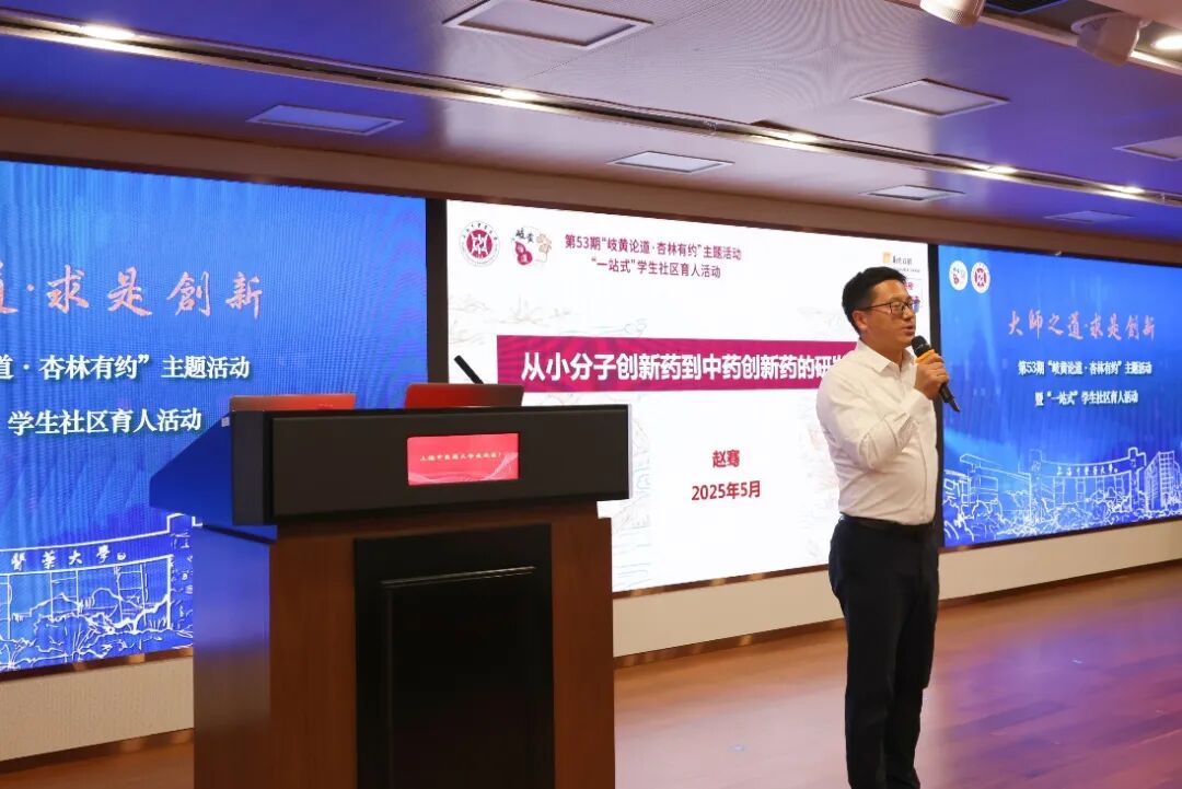 赵骞讲述了自己从学术研究到企业管理的转型经历。他以小分子创新药与中药创新药研发为例,分享了创新实践中的经验与感悟,提出创新需“以终为始”、强化项目管理、遵循政策导向。他提到,中医药发展既要尊重自身规律,也要善于运用现代科学技术和管理理念,鼓励青年师生要勇于创新、敢于实践,积极投身中医药事业,为人类健康福祉贡献力量。