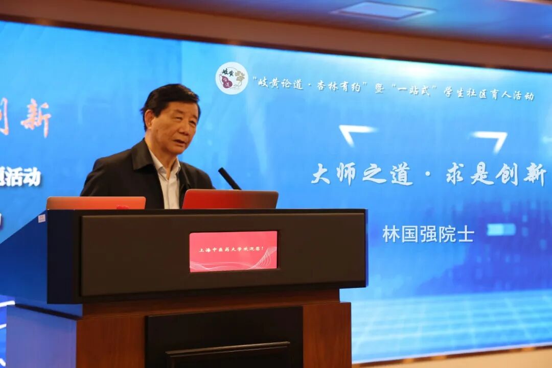 5月28日下午,第53期“岐黄论道·杏林有约”主题活动暨“一站式”学生社区育人活动举办。本次活动以“大师之道·求是创新”为主题,旨在探索学术创新与人才培养的新路径,推动学校教育与产业发展的深度融合。活动特邀中国科学院院士、我校创新中药研究院院长林国强及其培养的优秀毕业生代表——华润双鹤药业股份有限公司总裁赵骞作为分享嘉宾。校党委副书记沈辉为两位嘉宾颁发“阳光导师”聘书。学校相关职能部门负责人、华润双鹤经营公司代表,以及来自各学院的青年师生近200人现场参与。