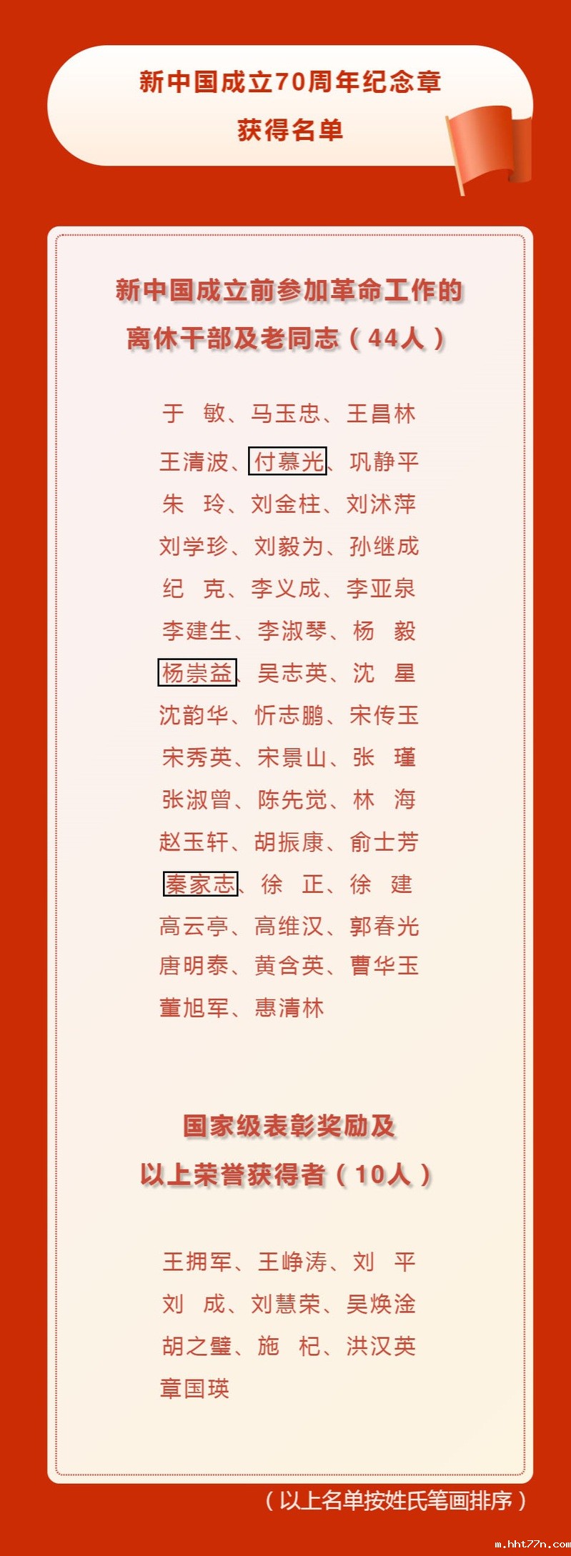 今年是中华人民共和国成立70周年,值此举国同庆之际,中共中央、国务院、中央军委决定向为中华人民共和国成立和社会主义现代化建设作出重要贡献的同志颁发纪念章。