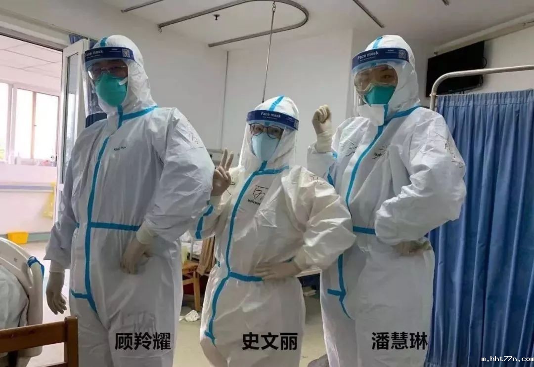 附属岳阳中西医结合医院潘慧璘、史文丽、顾羚耀作为上海第一批危重症患者救治医疗队成员,除夕夜奔赴武汉支援金银潭医院以来,他们已在抗疫一线奋战了十余天。在潘慧璘看护的重症患者中,有一位武汉医生Z先生,潘慧璘结合自身优势,建议他采用中西医结合的治疗方式,配合中药调理、功法训练以促进快速康复,如今Z先生已病愈出院。一日,史文丽完成一项护理操作后走出重症病房时被门上的螺丝钉刮破了防护服,所幸内层隔离衣没有破损,她说:“看着越来越多的患者被治愈,我们看到了胜利的曙光!让我们一起加油,一定能打赢这场没有硝烟的战争!”顾羚耀说,穿着一身隔离衣,大家见面打招呼的方法不是招招手,而变成了互相喷洒消毒剂,“困难总会过去的,美好的日子也不远了吧!”。