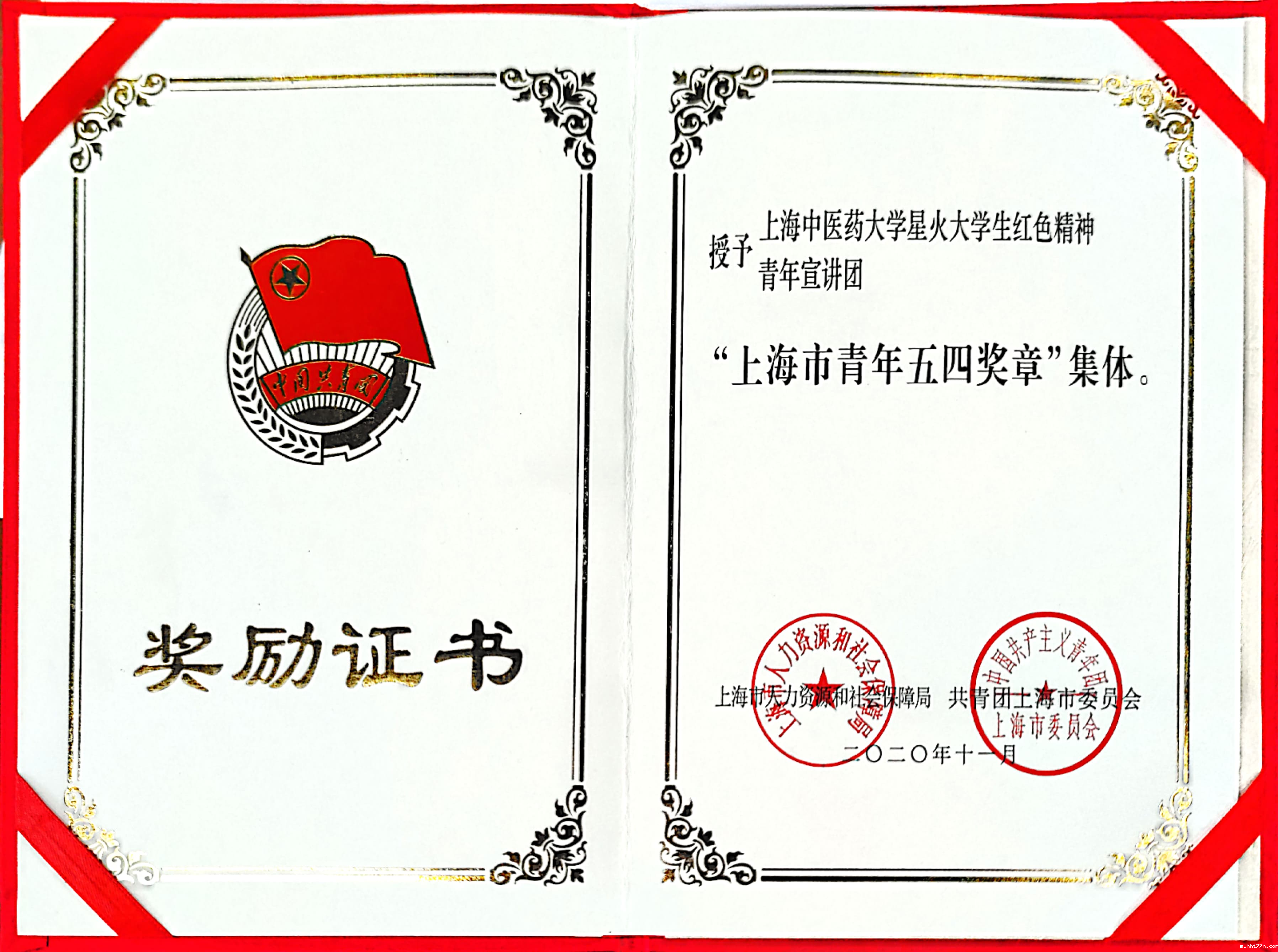 五年间的接续传承,也让红色精神的培养融入到上海中医药大学团员青年的精神血脉中。源上海、齐发展、共传承,他们走访红色基地,感受初心力量;激励青年同辈,传承红色精神;诵读红色故事,纪念革命先辈。习四史、走四方、扬中医,他们在井冈山坚定信念,发挥中医药特色;他们在古田学习思想建党,义诊近五千人次;他们在百色忆岐黄初心,宣传习近平新时代中国特色社会主义思想。该宣讲团在学校党委的关心下,学校各部门的大力支持下,在各位团员青年的不懈努力下,在2020年荣获上海市青年“五四奖章”集体荣誉称号。