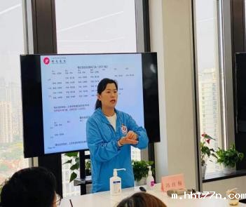 护理第四党支部的青年党员程鑫为参加讲座的人员讲解手卫生知识,并现场演示“七步洗手法”,帮助掌握正确的洗手方法,认识到规范洗手的重要性。