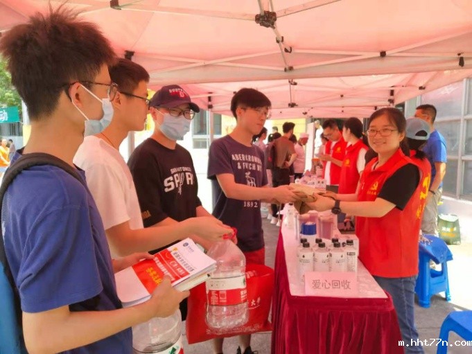 在6月24日活动现场特别设置的“爱心回收点”,毕业生们陆续带着各类纸箱、瓶罐、旧书、衣服等称重捐赠、兑换礼品。学生们纷纷表示,宿舍见证了他们在大学期间的成长,在离校时留下整洁的宿舍,可以为保洁阿姨们减轻一点工作量,也是为自己的大学时光划上了圆满句号。这不仅表达了毕业学子对母校的依恋和感激,体现了对曾经青葱岁月的怀念和不舍,更展现了新时代大学生的精神风貌。活动结束时,毕业生们捐赠的可回收物已堆满一车,支部党员们将把这些可回收物品进行分类整理,使资源得到有效利用,也让爱心不断传递下去。