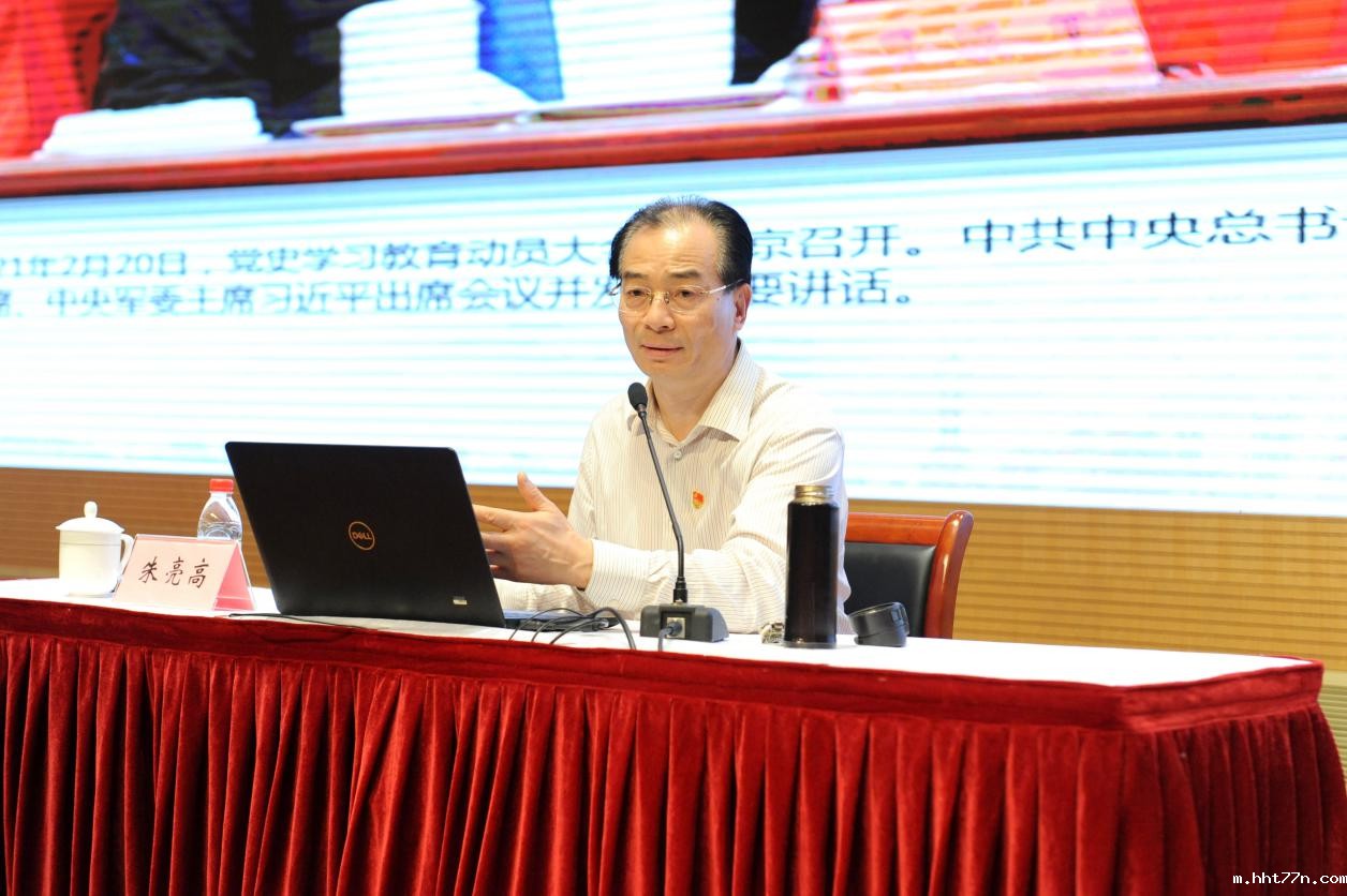 朱亮高首先带领与会人员学习了习近平总书记关于党的历史的重要论述和党史学习教育的重点内容,并从矢志践行初心使命的思想逻辑、历史逻辑、实践逻辑和增强践行初心使命的实际本领四个维度作深入解读。他指出,矢志践行初心使命的思想逻辑聚焦于“为人民谋幸福”“为民族谋复兴”“为世界谋大同”,中国共产党是为中国人民谋幸福的政党,也是为人类进步事业而奋斗的政党。矢志践行初心使命的历史逻辑在于,我们党的奋斗目标紧扣时代,引领中国前进方向,自1921年成立至1949年为民族独立和人民解放两大任务而努力奋斗,新中国成立后围绕国家富强、人民幸福而砥砺奋进。回望百年历史,让我们感受到矢志践行初心使命的实践逻辑,这就是坚持旗帜鲜明讲政治,重视思想建党、理论强党,坚持以人民为中心的发展思想,善于总结经验、把握规律,赓续中国共产党人的精神血脉。他强调,增强践行初心使命的实际本领,要始终坚持问题导向,增强执政本领;始终抓好第一要务,增强发展本领;始终树牢忧患意识,增强斗争本领;始终坚持学用哲学,增强看家本领。