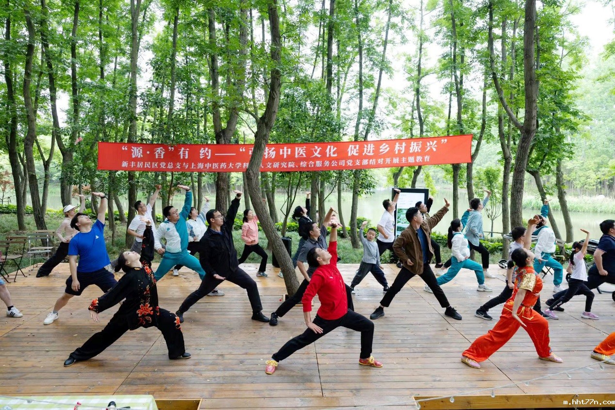 科技人文研究院第二党支部书记任宏丽结合非遗传统项目“挂蛋”,向大家重点介绍了二十四节气中立夏和小满的节气特点、民俗文化、传统医学保健知识等,并指导大家一起体验如何制作“挂蛋”。青年教师班主任秦海龙带领结对共建党员、白领人才公寓的青年白领,一起练习八段锦,从“双手托天理三焦”到“背后七颠百病消”,一招一式下来,大家既体悟到中医药文化的魅力,又掌握了如何有效预防颈椎病、肩周炎等“白领综合征”,达到中医药“治未病”的目的。校武术队队员表演了长拳、太极拳、刀术等精彩节目。