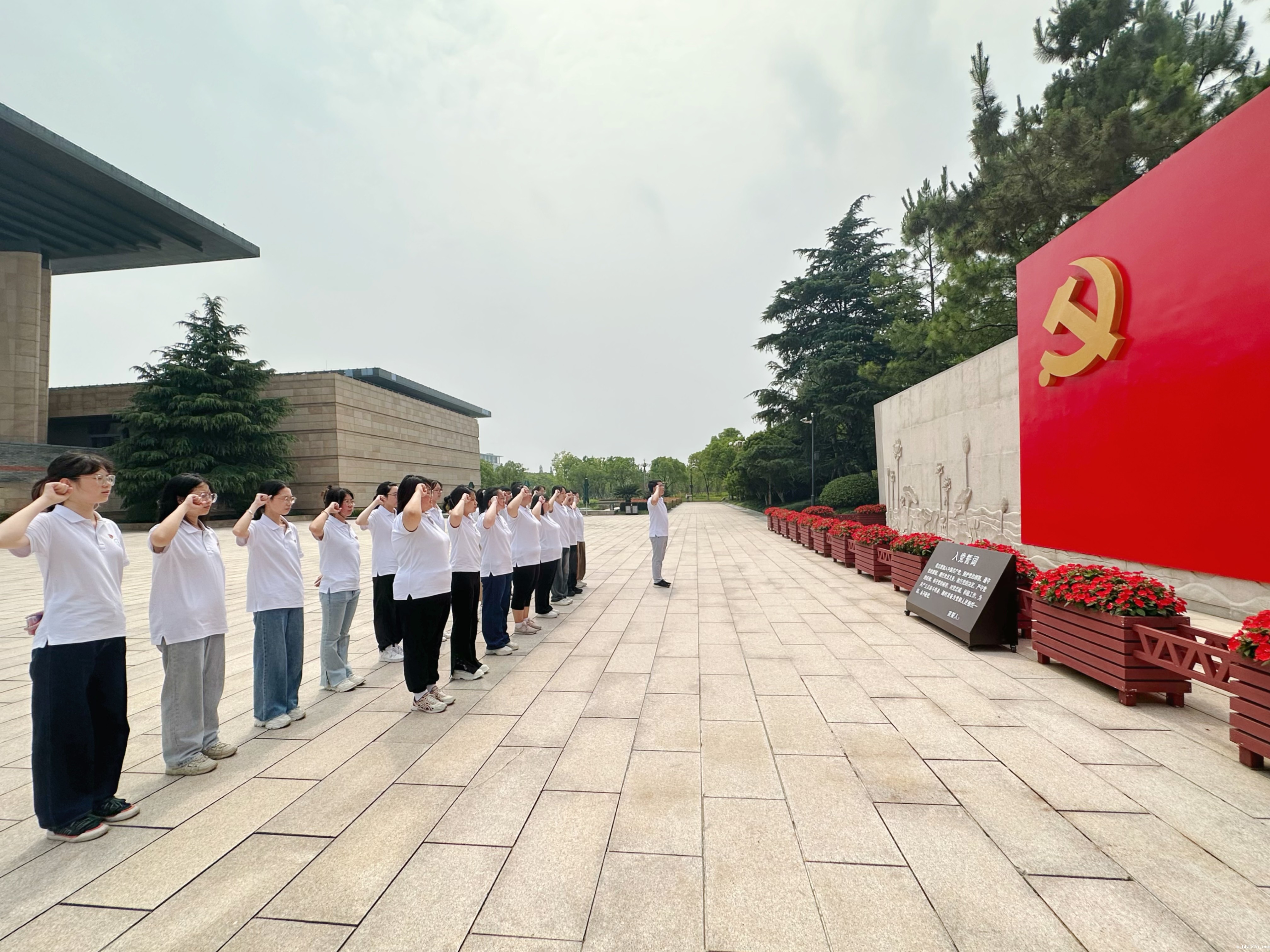 随后,在学生党支部书记郭健坤领誓下,全体党员庄严地举起右手、握拳,面对鲜红的党旗一起重温了入党誓词。