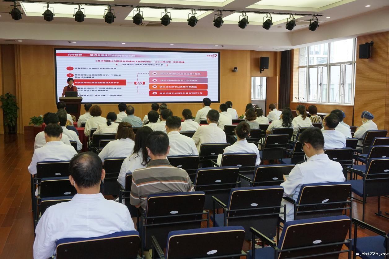 为深入开展学习贯彻习近平新时代中国特色社会主义思想主题教育,进一步提高公立医院党建质量,推进全面从严治党向基层延伸,充分发挥内设机构党支部保证政治方向、参与重要决策、服务人才成长、促进事业发展的重要作用,6月23日下午,岳阳中西医结合医院党委书记郑莉讲授题为“加强党支部建设 促进医院高质量发展”的主题教育专题党课。医院行政第二党支部、肾病内科党支部、神经内科党支部全体党员和部分支部书记代表等参加并认真聆听了党课。